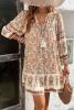 Apricot Floral Print Boho V-Neck Lace-Up Dress