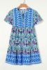 Home > Sky Blue Patchwork Tie Neck Flounce Sleeve Ruffle Hem Mini Dress