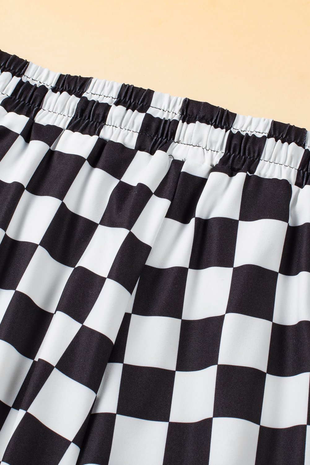 Black Checkered Drawstring Elastic Waist Casual Shorts