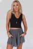 Gray Elastic Waist Side Pocket Culotte Shorts