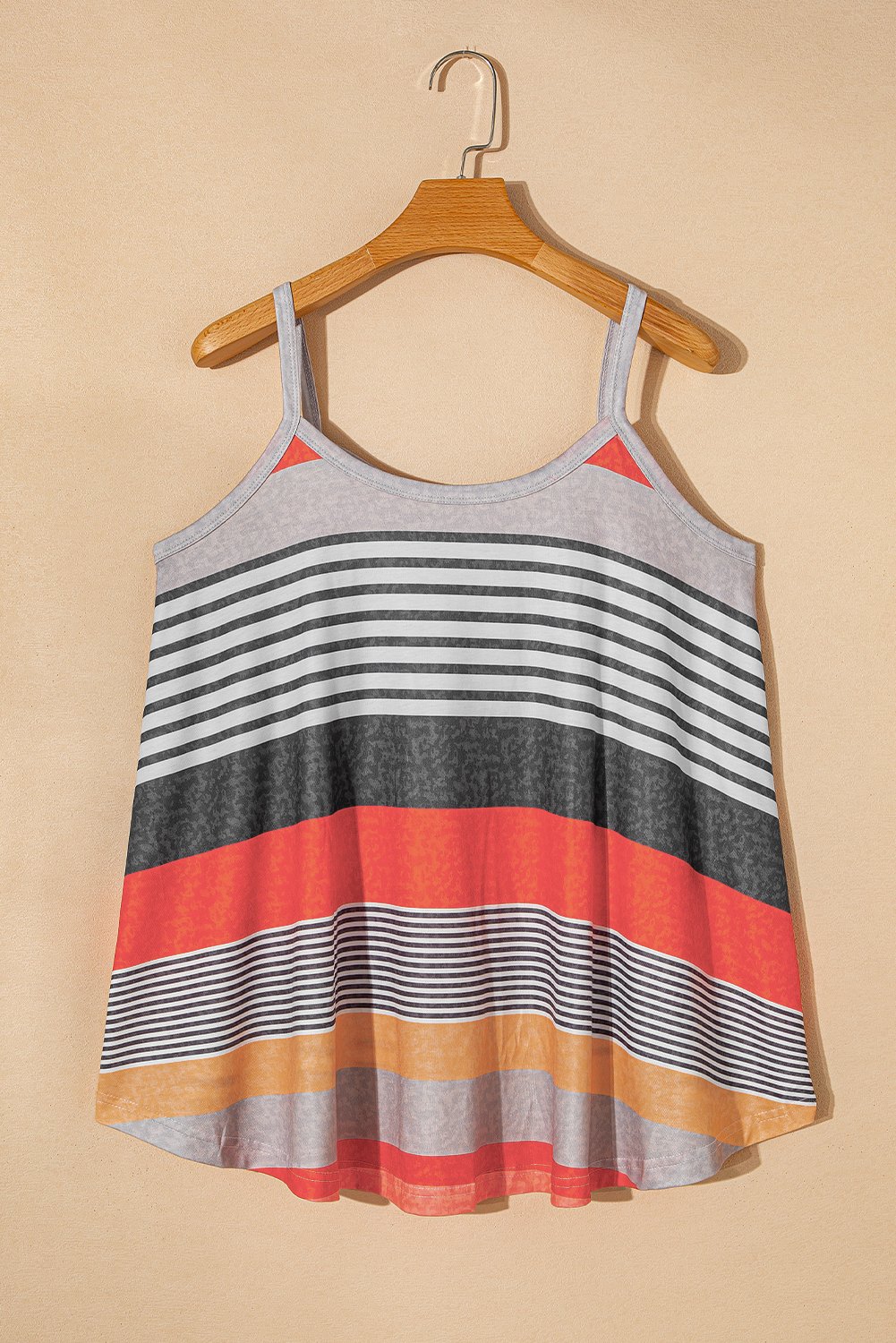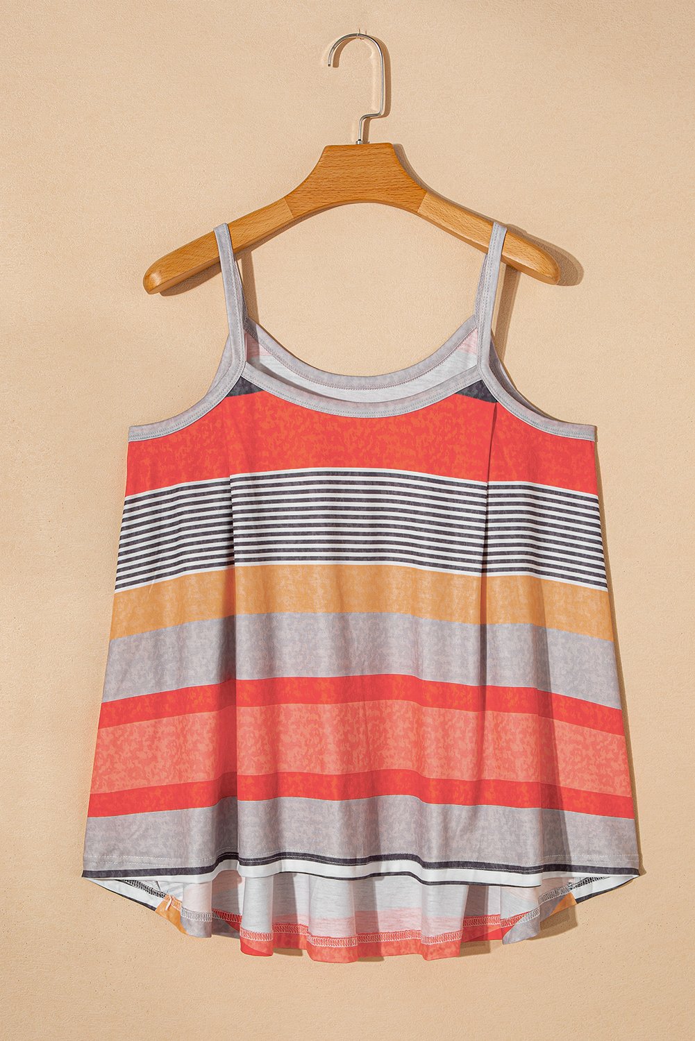 Home > Red Colourful Striped Casual Flowy Cami Top