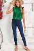 Bright Green Frilled Trim Sleeveless Pleated Blouse
