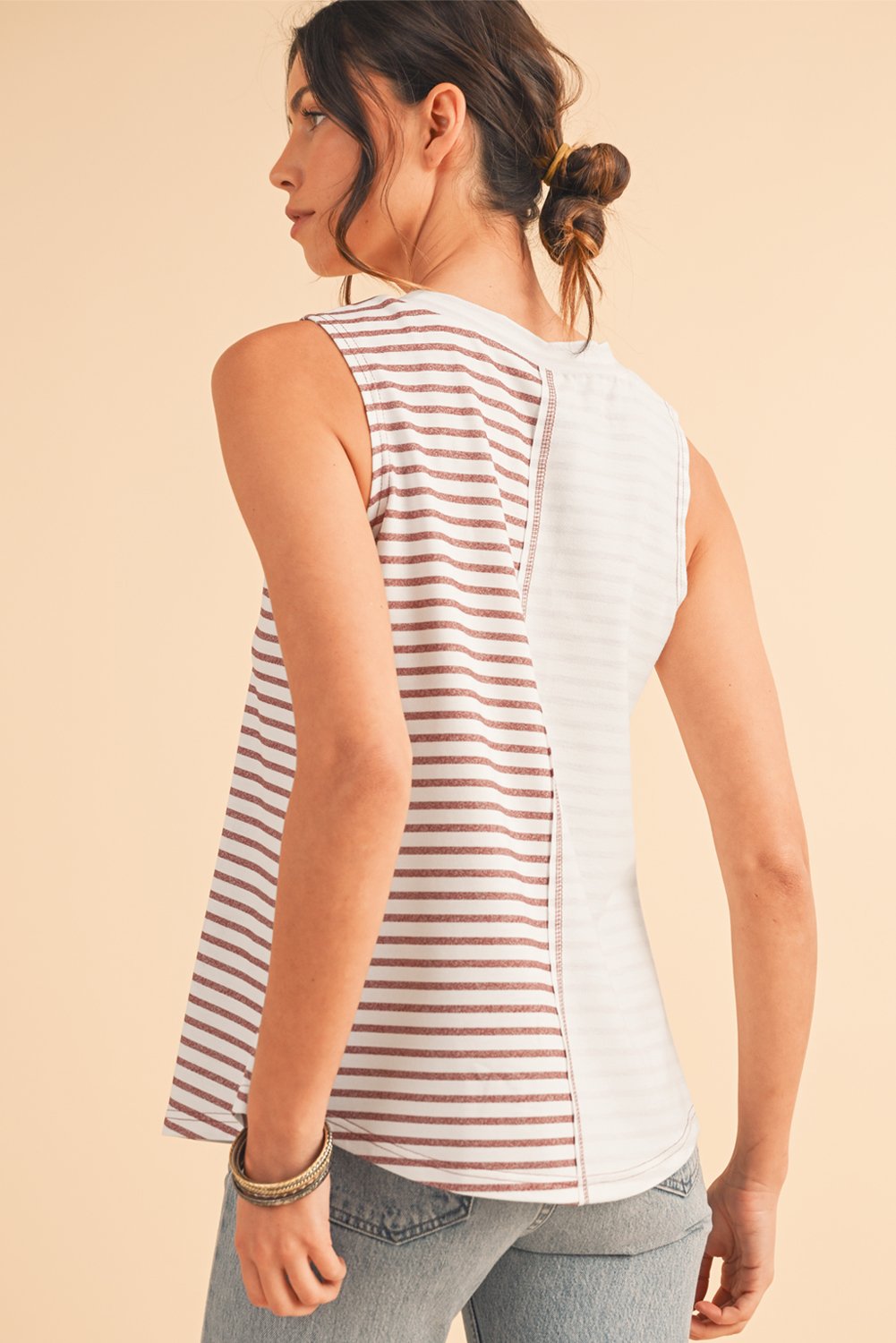 Brown Striped Center Seamed Patchwork Tank Top