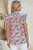 Rose Red Abstract Print Ruffled Flutter Shoulder Blouse