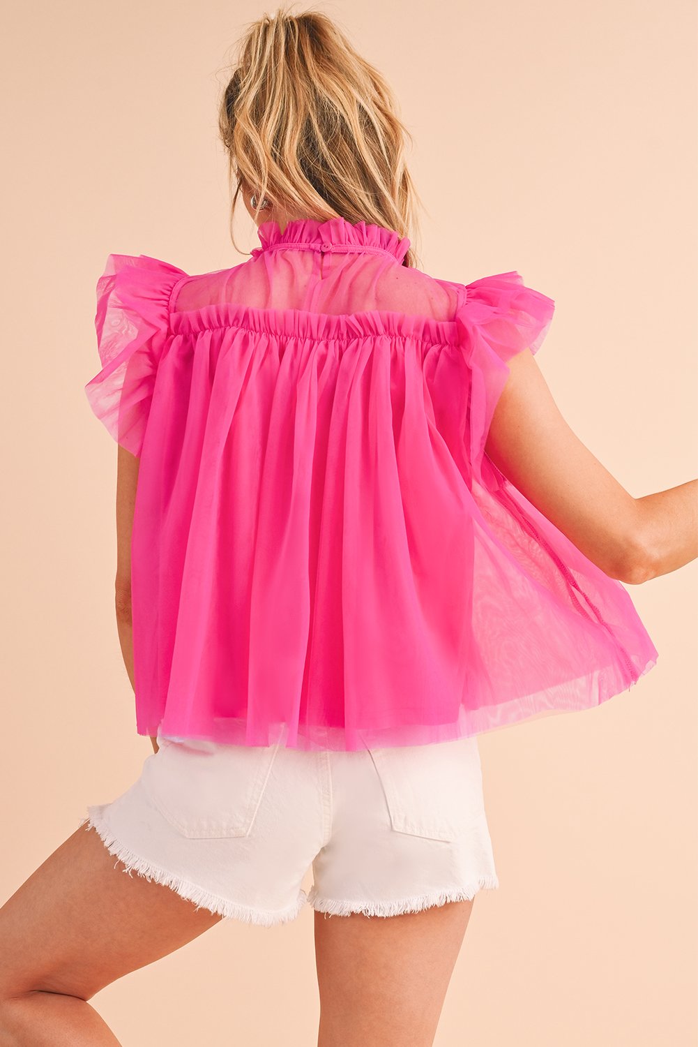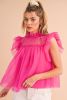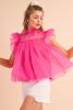 Strawberry Pink Ruffle Trim Mesh Layered Blouse