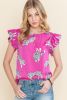 Rose Cheetah Print Ruffle Trim Sleeveless Shirt