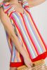 • Features a multicolor striped design with a V-neckline and ruffle straps.
