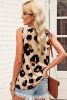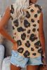 Cheetah Button Neck Casual Chest Pocket Tank Top