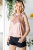 Home > Pink Leopard Tie Neck Casual Sleeveless Shirt