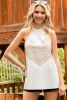 White Spotted Print Tie Neck Color Block Halter Sleeveless Shirt