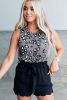 Gray Cheetah Print Sleeveless Crewneck Tank Top
