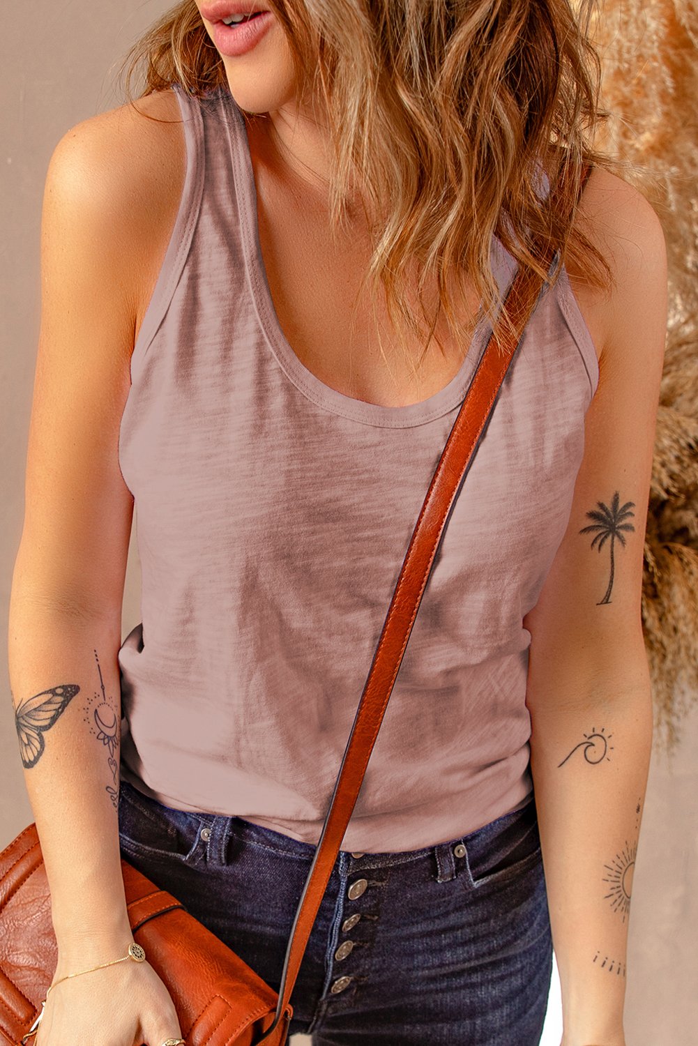 Pink Plain Scoop Neck Basic Solid Tank Top