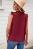 Burgundy Ruffle Trim Swiss Dot Button Closure Sleeveless Shirt