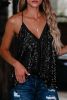 Home > Black Sexy Contrast Spaghetti Strap Sequin Camisole