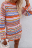 Orange Stripe Long Sleeve Colorblock Midi Sweater Dress