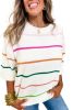 White Striped Half Sleeve Drop Shoulder Sweater