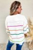 Home > White Striped Half Sleeve Drop Shoulder Sweater