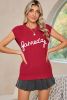 Stand out in style with this sweater, featuring a bold letter pattern design perfect for sports events or casual outings. Crafted with high-quality rib-knit material, this sleeveless sweater offers both comfort and a trendy look, ideal for layering or wearing alone. The vibrant red color adds a pop of excitement to any outfit, making it a versatile piece that can be dressed up or down effortlessly. Show off your team spirit or personal style with this eye-catching knitted sweater, designed to keep you cozy and fashionable in all seasons. Elevate your inventory with this fashionable piece, perfect for retailing to customers who appreciate quality, style, and comfort at wholesale prices.