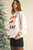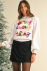 White Colorful Tinsel Merry Every Thing Graphic Mock Neck Sweater