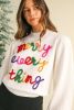 Home > White Colorful Tinsel Merry Every Thing Graphic Mock Neck Sweater