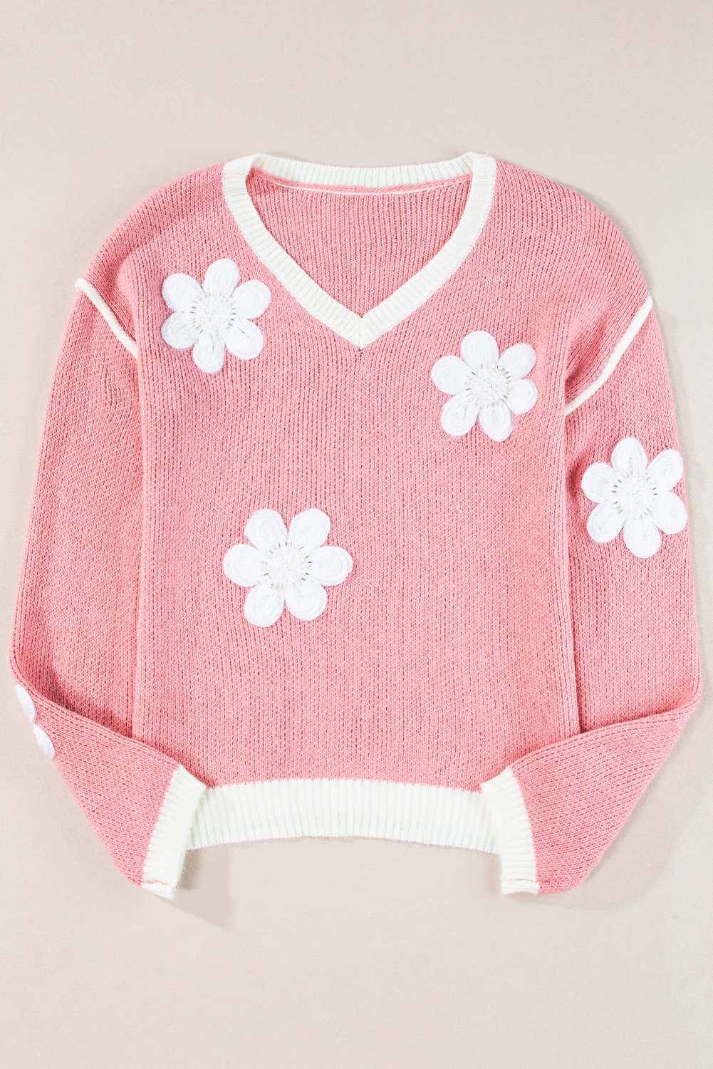 Pink Floral Patched Contrast Trim V Neck Sweater Pink Floral Patched Contrast Trim V Neck Sweater Pink Floral Patched Contrast Trim V Neck Sweater Pink Floral Patched Contrast Trim V Neck Sweater Pink Floral Patched Contrast Trim V Neck Sweater Pink Floral Patched Contrast Trim V Neck Sweater