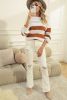 White Casual Stripe Print Knit Puff Sleeve Sweater