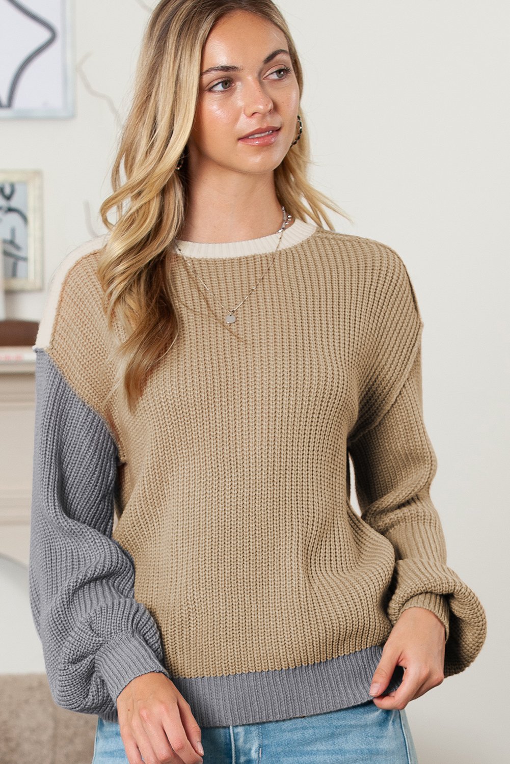 • Our Multicolor Patchwork Loose Fit Chunky Knit Sweater, a cozy and stylish addition to your fall and winter wardrobe.