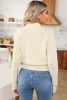 Beige Ribbed Long Sleeve Surplice Crop Sweater