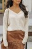 Beige Wrap Casual V Neck Backless Knit Sweater