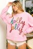 Pink Holly Jelly Round Neck Casual Pullover Sweatshirt