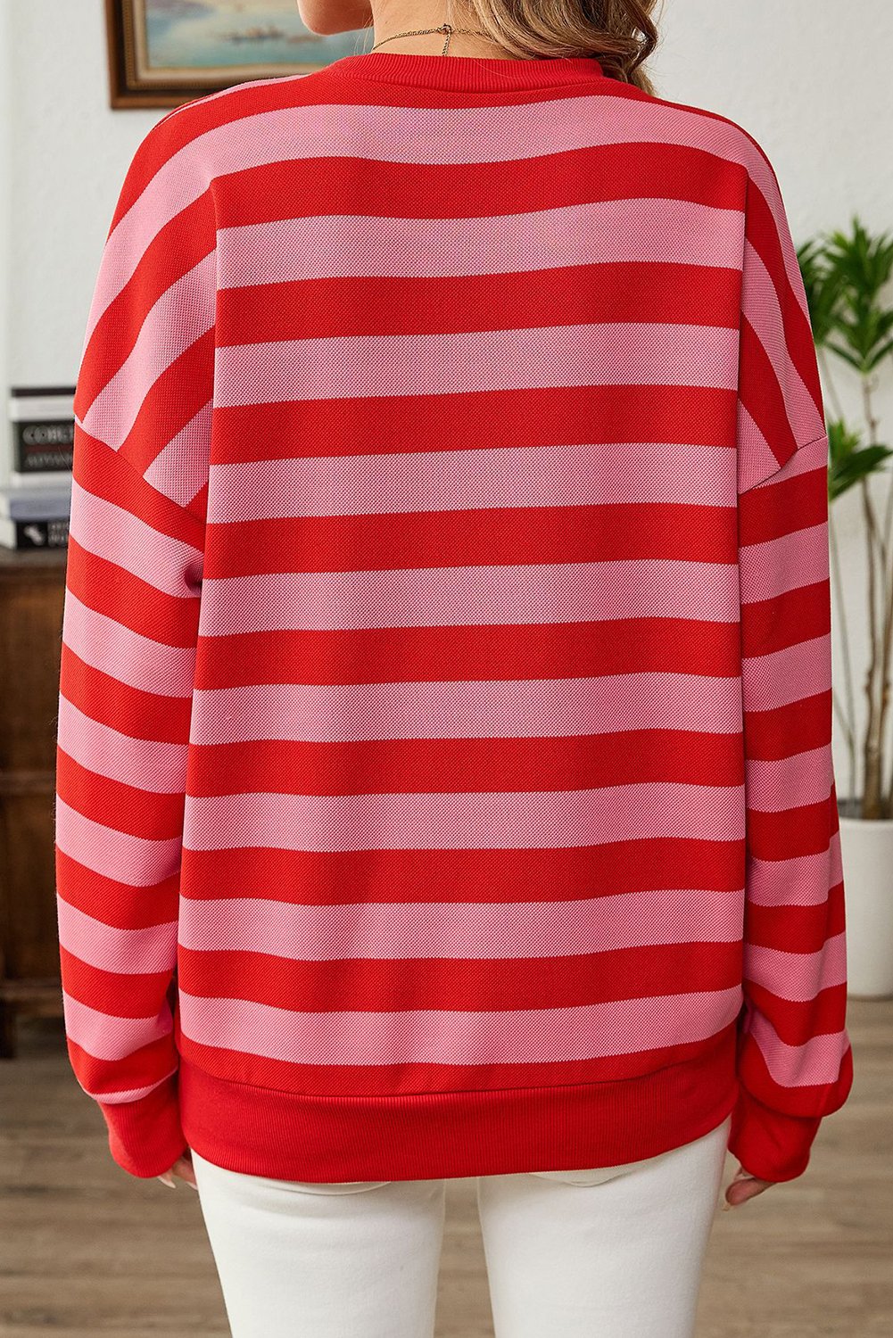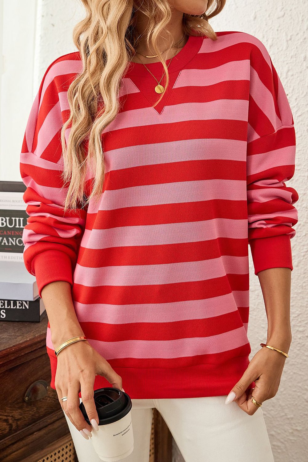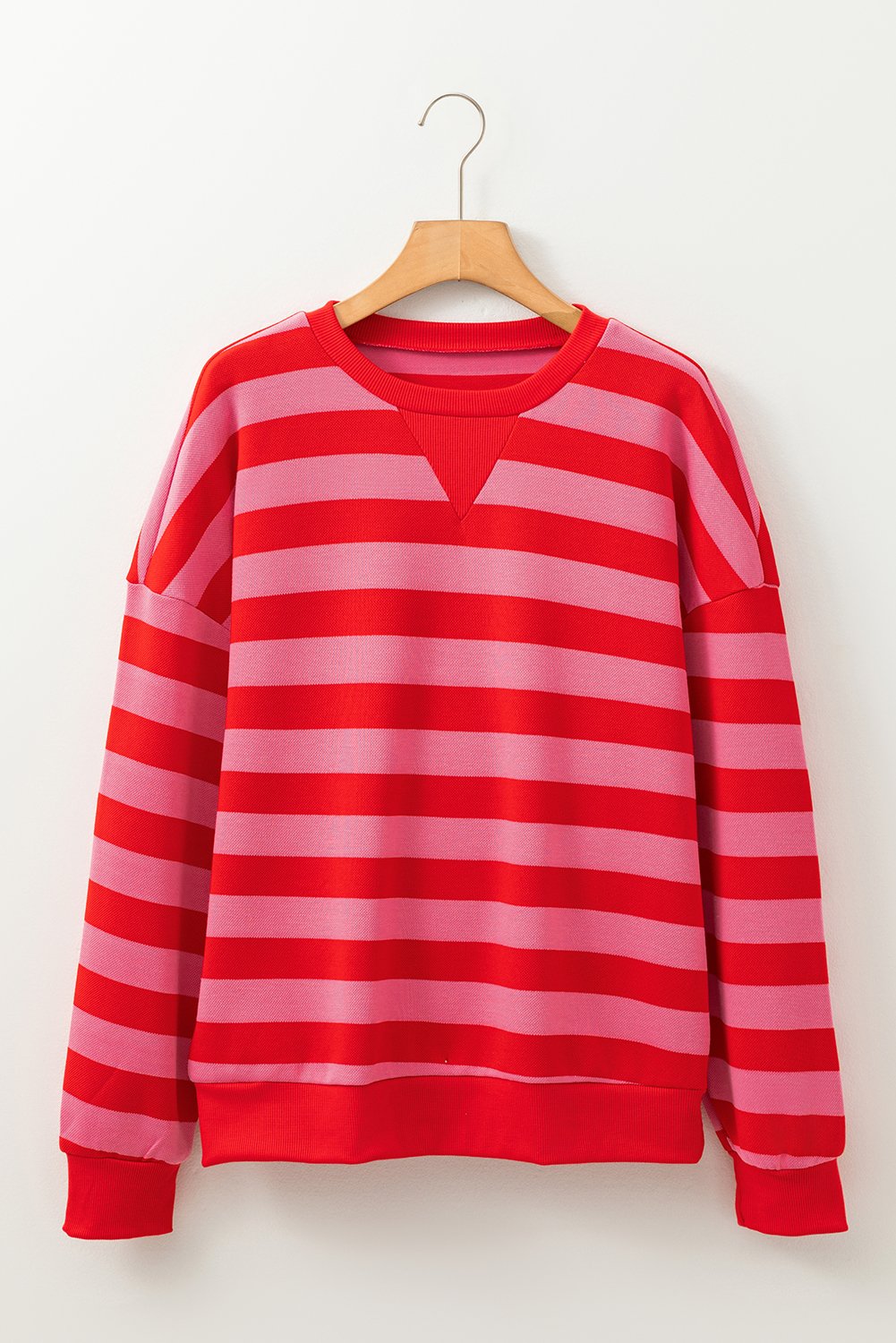 Red Stripe Round Neck Drop Shoulder Sweatshirt