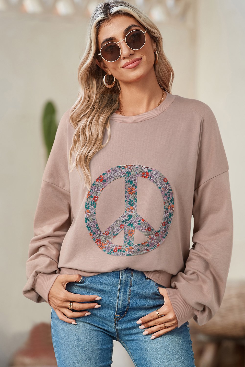 Home > Goat Floral Peace Symbol Drop Shoulder Sweatshirt