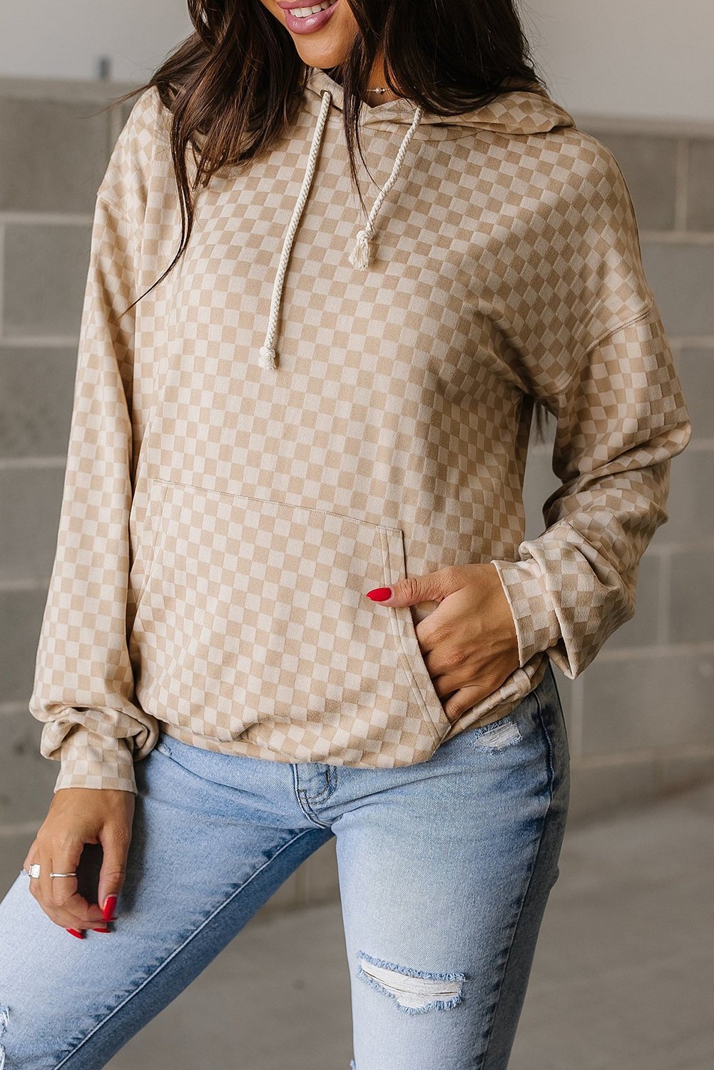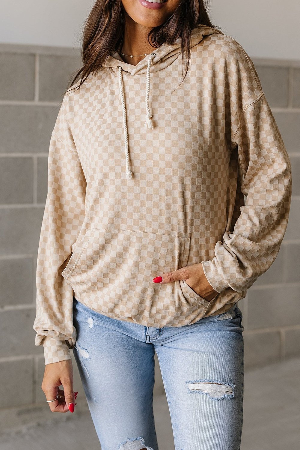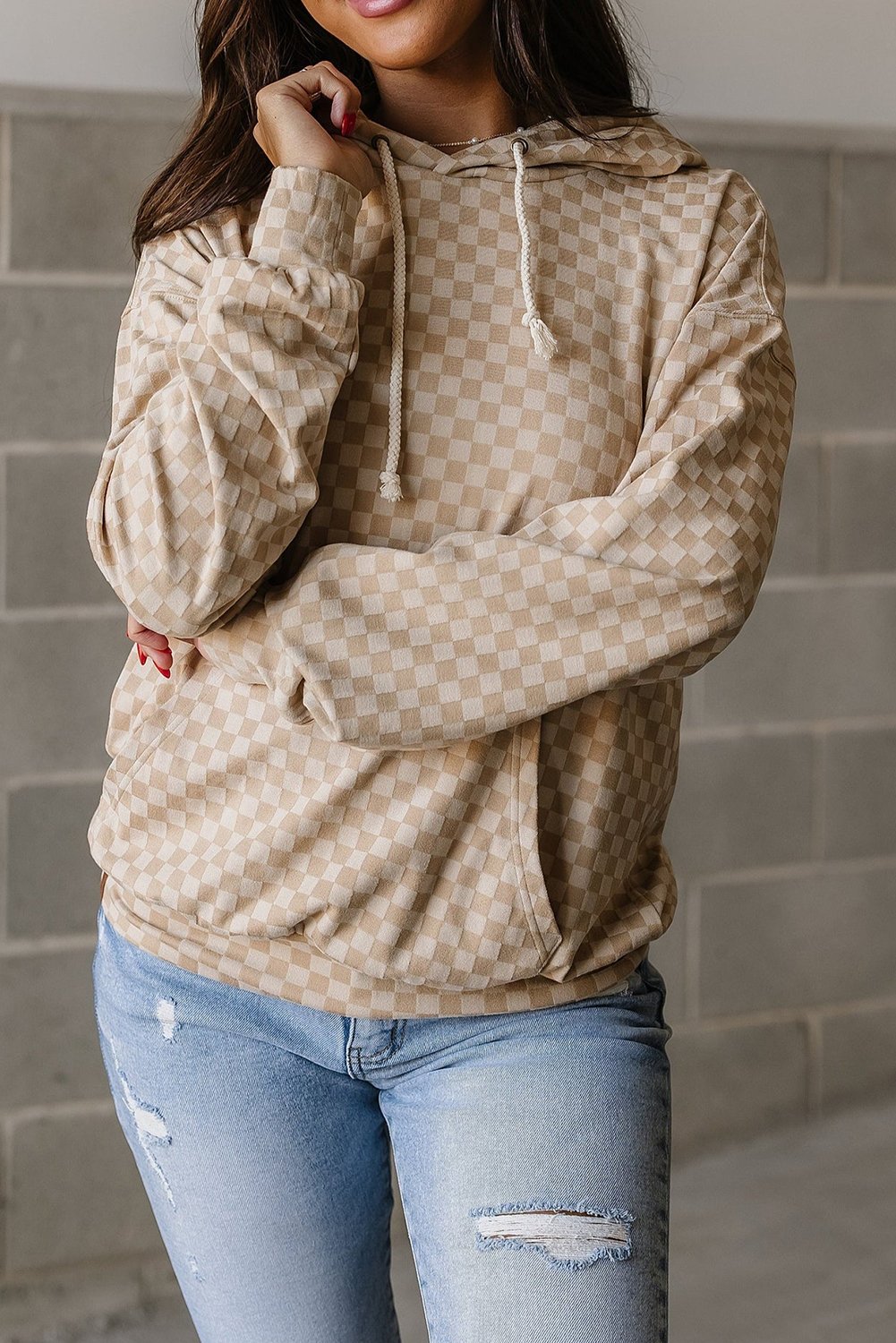 Home > Khaki Checkered Kangaroo Pocket Hoodie