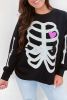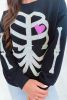 Black Skull Print Heart Sequin Round Neck Sweatshirt