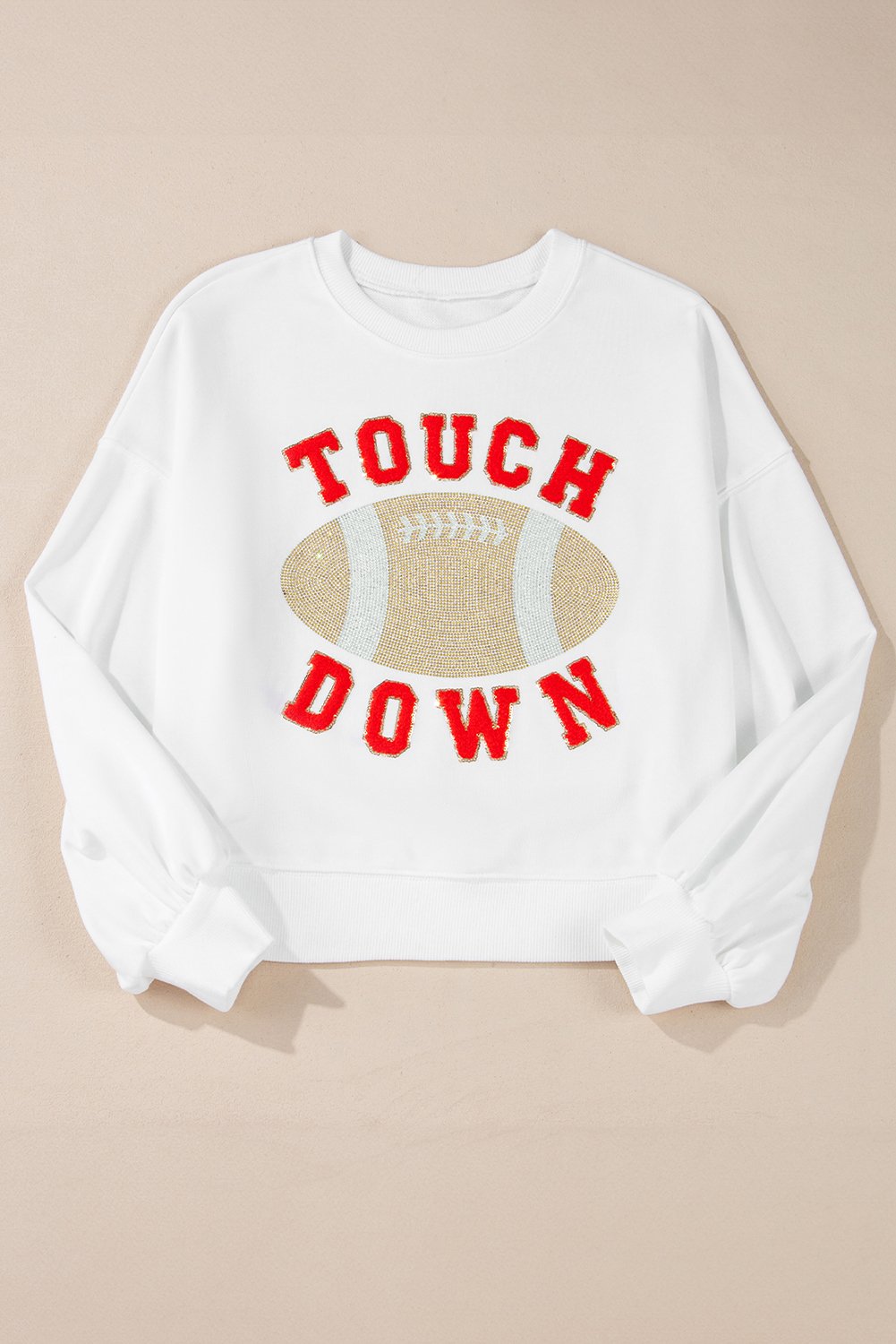 White TOUCH DOWN Rugby Graphic Pullover Sweatshirt