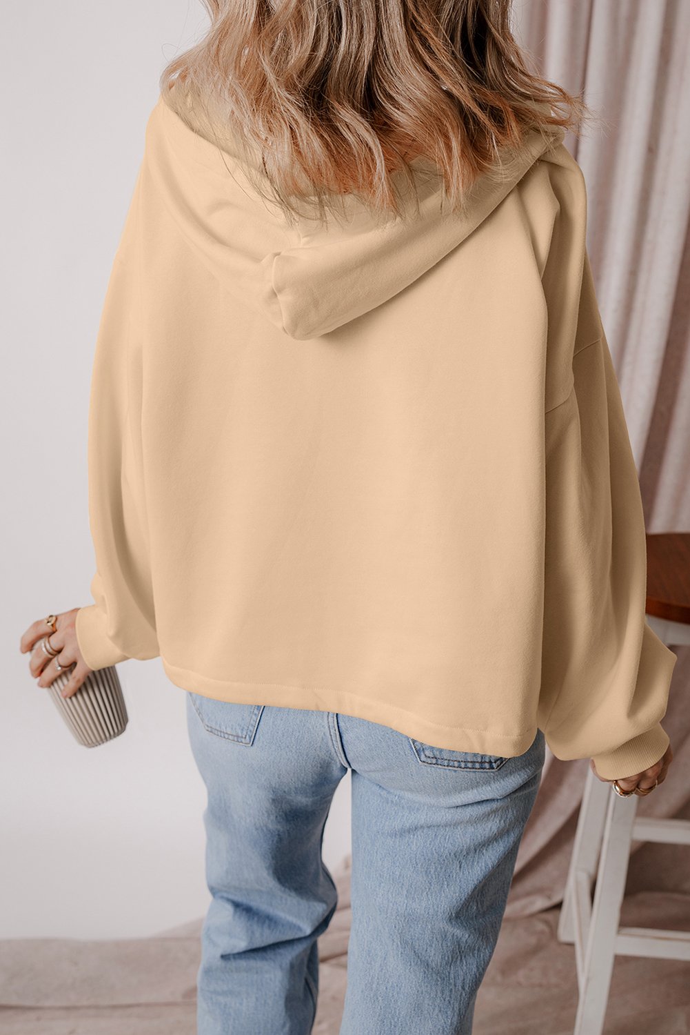 Parchment Half Zipper Kangaroo Pockets Drop Shoulder Hoodie