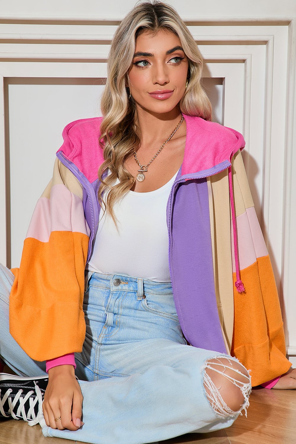 Home > Grapefruit Orange Oversized Colorblock Patchwork Full Zipped Hoodie