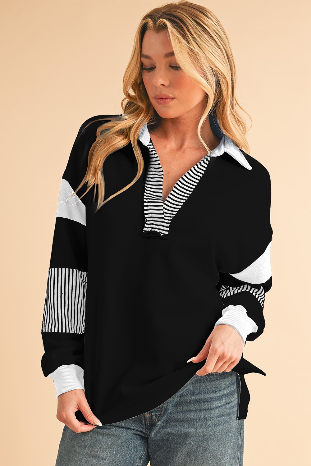 Black Striped Patchwork Collar Sweatshirt Black Striped Patchwork Collar Sweatshirt Black Striped Patchwork Collar Sweatshirt Black Striped Patchwork Collar Sweatshirt Black Striped Patchwork Collar Sweatshirt Black Striped Patchwork Collar Sweatshirt