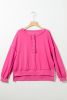 Hot Pink Slouchy Drop Shoulder Henley Sweatshirt
