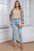 Apricot Plaid Print Quilted Raglan Sleeve Sweatshirt