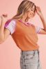 Orange Exposed Seam Color Block V Neck Waffle TShirt