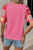 Home > Strawberry Pink Floral Crochet Short Sleeve T Shirt