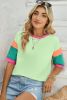 Home > Green Color Block Sleeve Round Neck Oversize Top