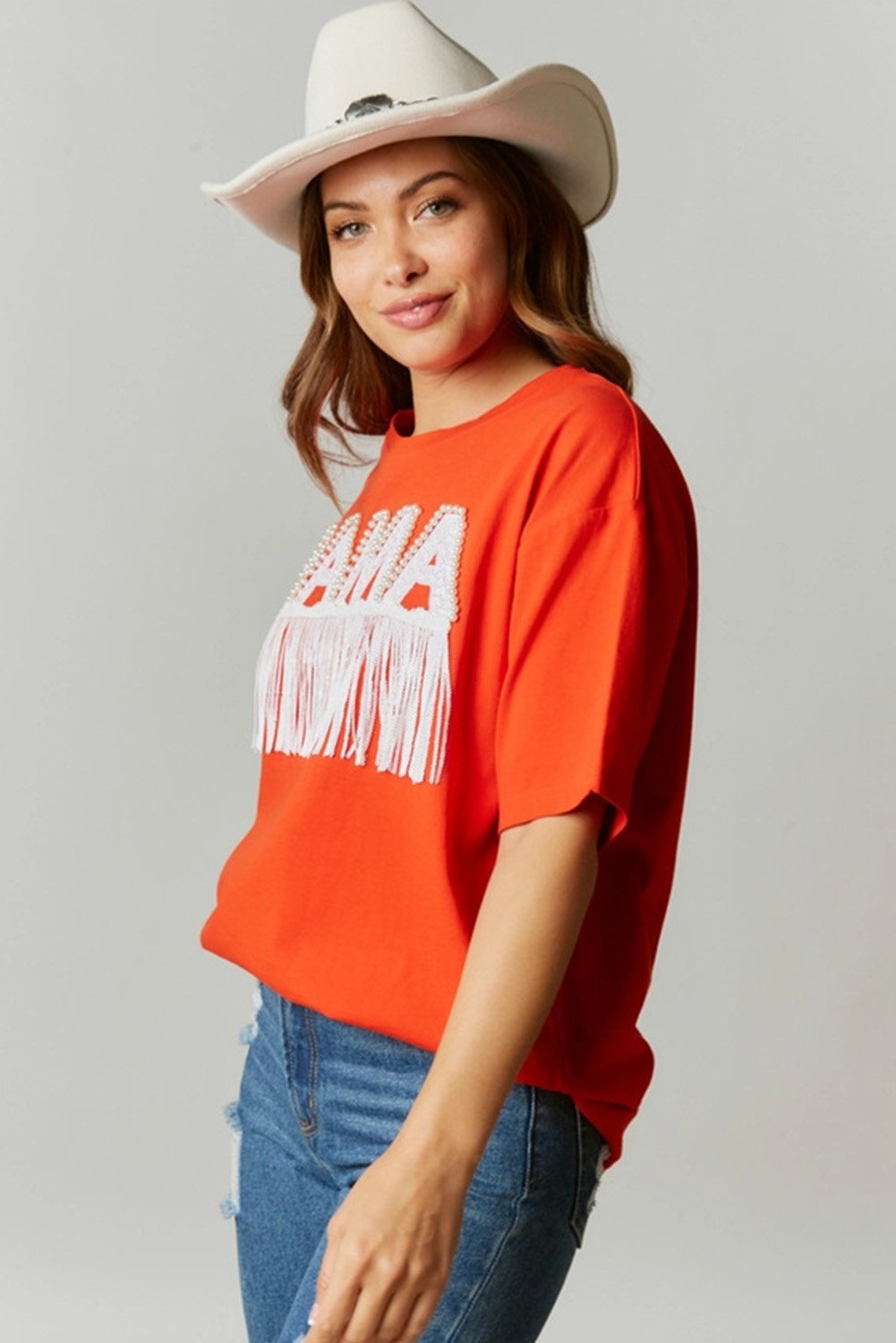Orange Beaded MAMA Fringe Lettering Oversized T Shirt