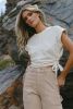 Home > White Center Seamed Side Drawstring Cap Sleeve T-shirt