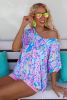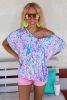 Pastel Blue Abstract Floral Print Short Sleeve V Neck T Shirt