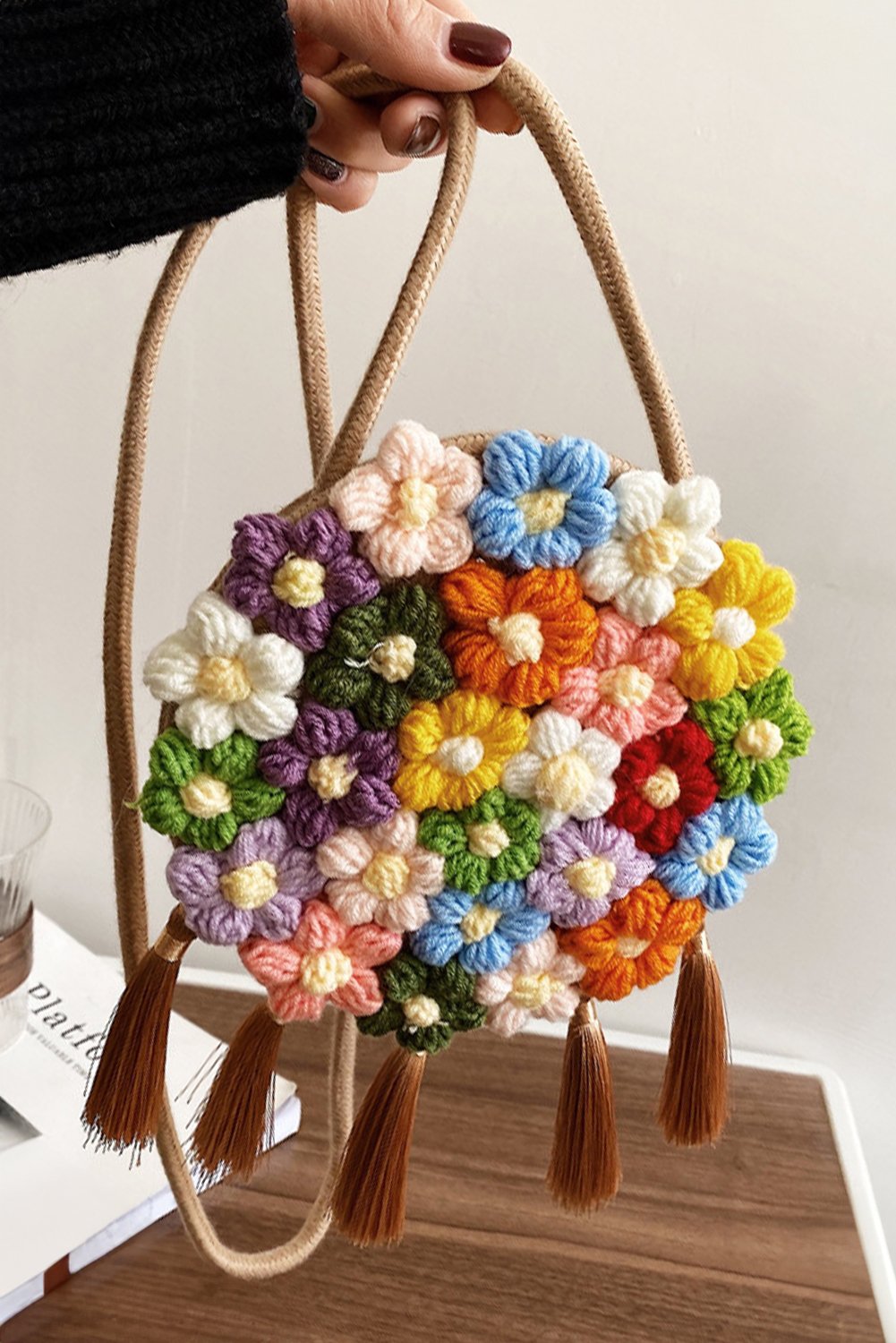 Home > Coffee Colorful Flower Crochet Tasseled Shoulder Bag