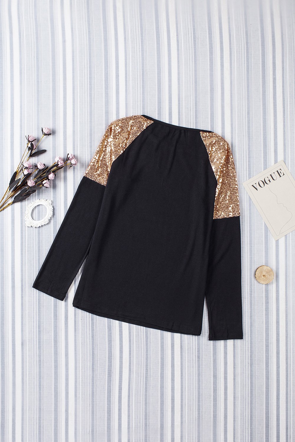 Blank Sweatshirt Black & Gold Raglan Sleeve Sequin Top Pullover Long Sleeve Shirt Customized