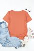 Home > Blank T Shirt - Orange Casual Holes Crew Neck Cotton Mixed T-shirt Customized