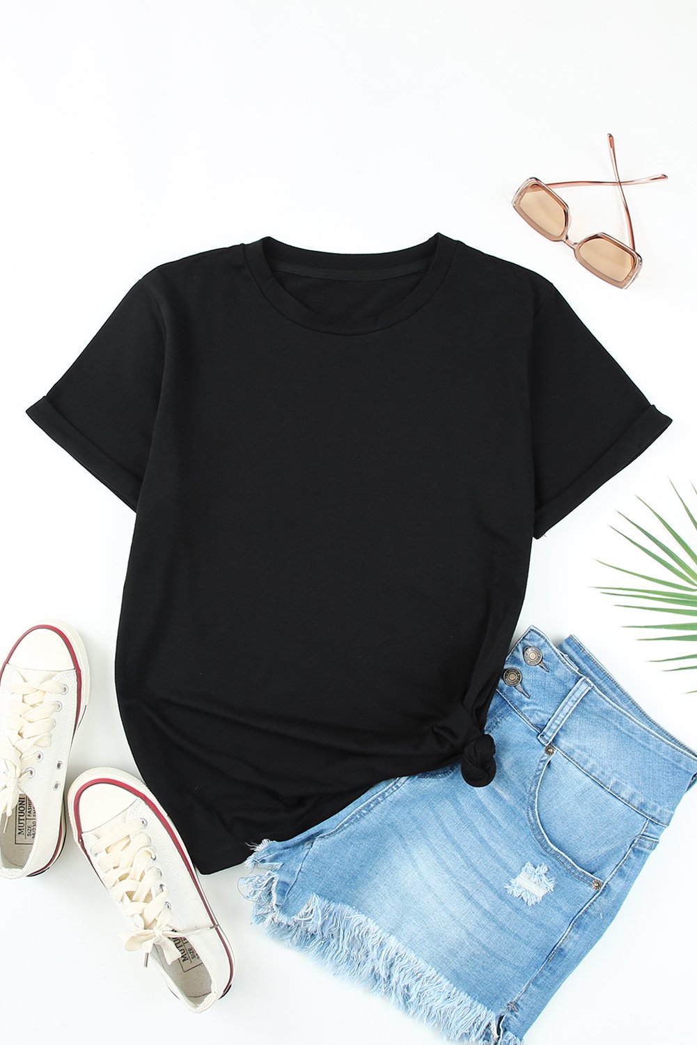 Home > Blank T Shirt - Black Plain Rolled Up Crewneck T-Shirt Customized